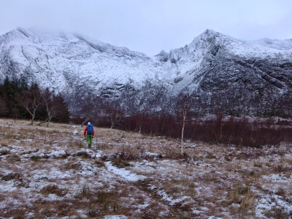 It was beautifully and wintery, but not exactly the hiking conditions we had hoped for. We made a half-hearted stab at Skarven, but turned quickly, regretting the lack of crampons in our arsenal.
